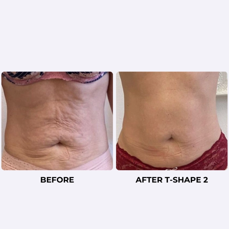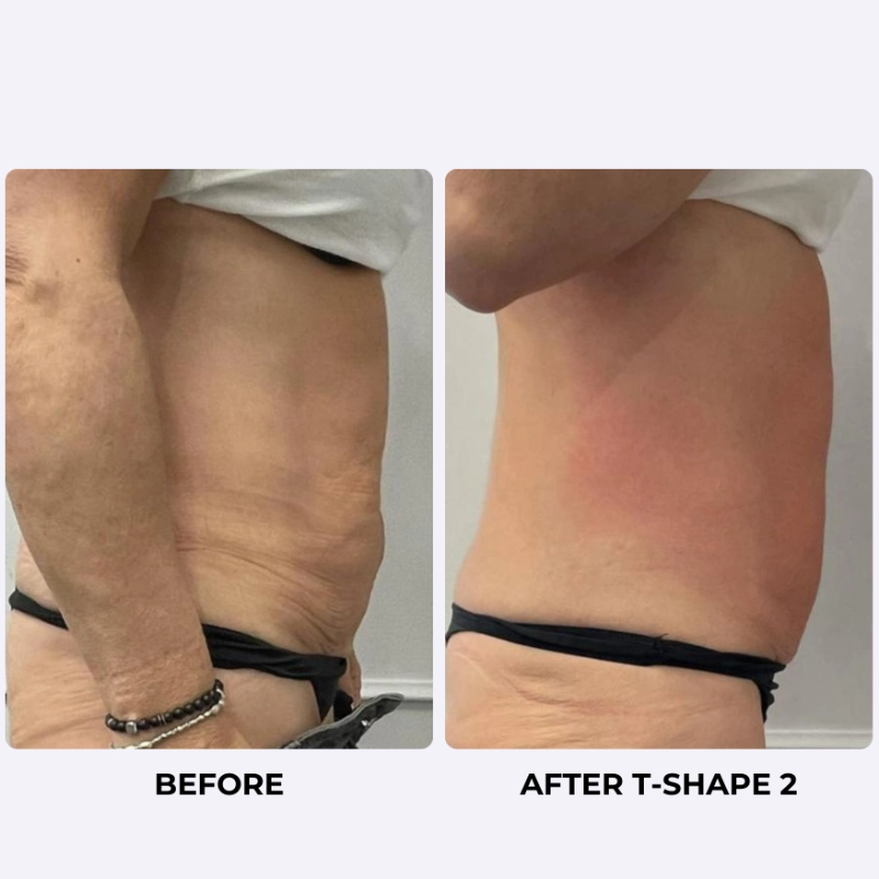 T-Shape 2 (A non-invasive abdominal contouring treatment that combines radiofrequency energy, low-level laser therapy, and endodermic vacuum massage to break down stubborn fat, tighten loose skin, and smooth the midsection. No needles, no surgery, and zero downtime — just real, visible results.)